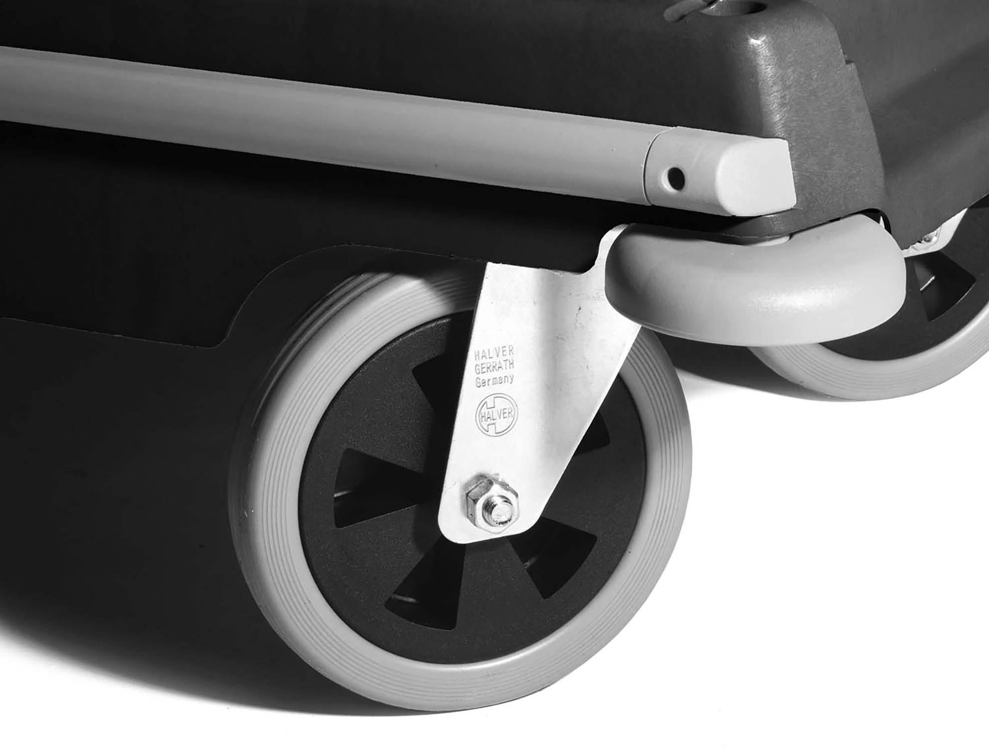 - Große Vollräder mit geringem Rollwiderstand für schwere Lasten