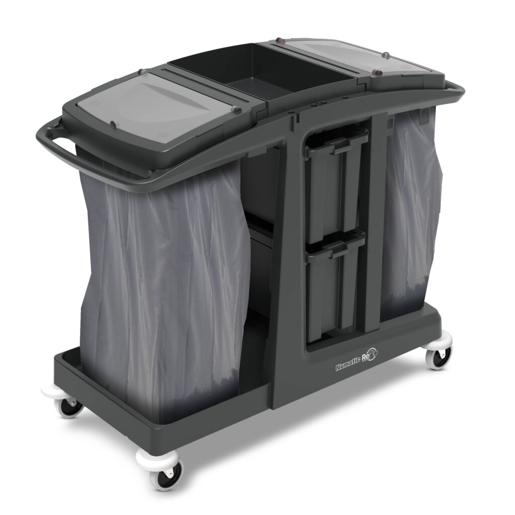 Die Erfüllung aller Qualitätsstandards – besonders in sensiblen Bereichen – gehört zu den elementaren und wichtigen Eigenschaften eines Reinigungswagens. Effektive Mopp-Systeme, reichhaltiges Zubehör, Konfigurationsvielfalt und eine sehr gute Manövrierbarkeit sind innovative Merkmale, die perfektionieren. Die Verwendung von recyceltem Kunststoff machen unsere Wagen zu nachhaltigen Profis.